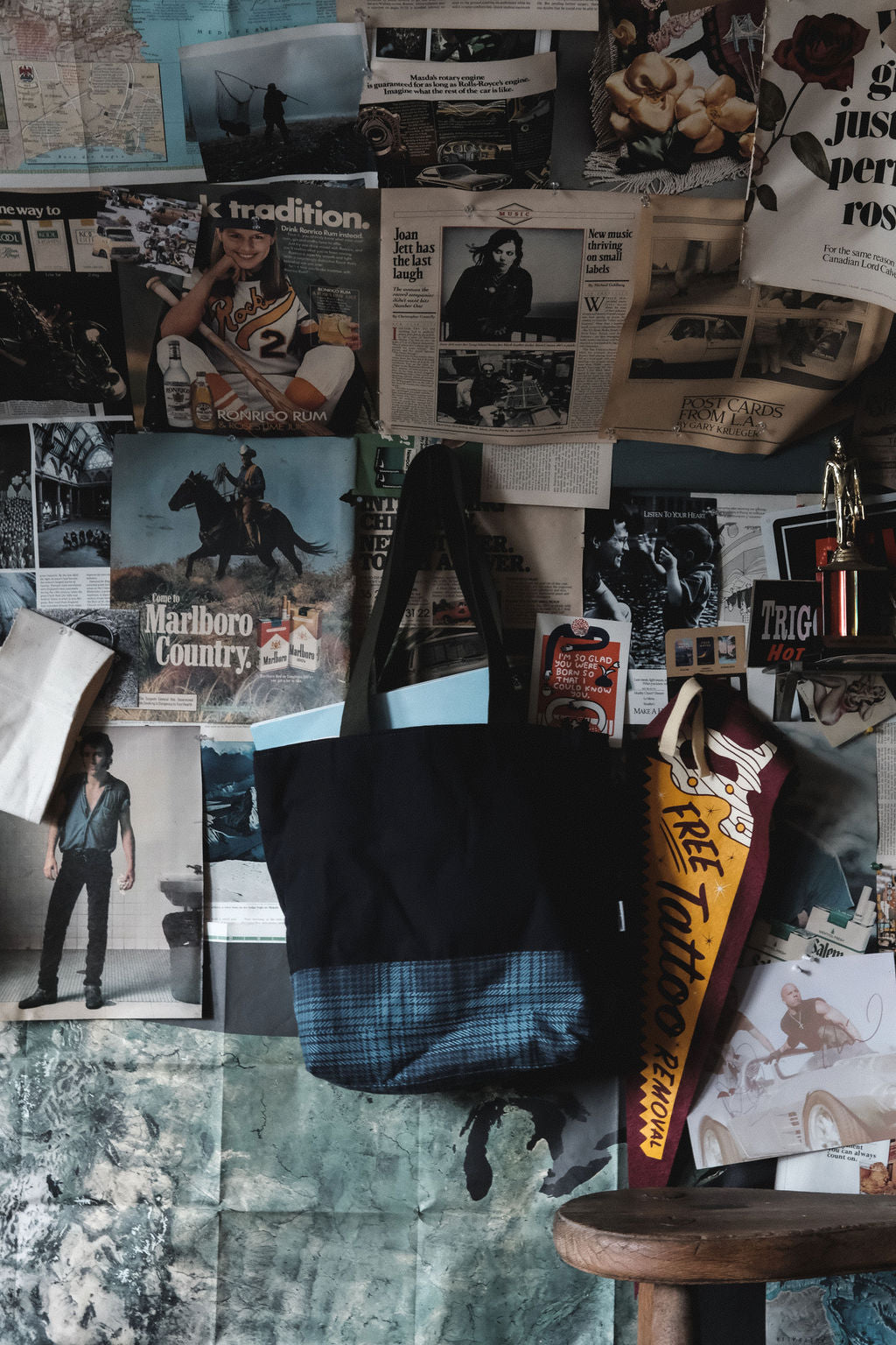 Each tote is sewn from canvas originally used to sample the Pomfret, paired with panels of flannel saved from the cutting room floor. This flannel is too beautiful to let go to waste — every offcut finds a new purpose here.